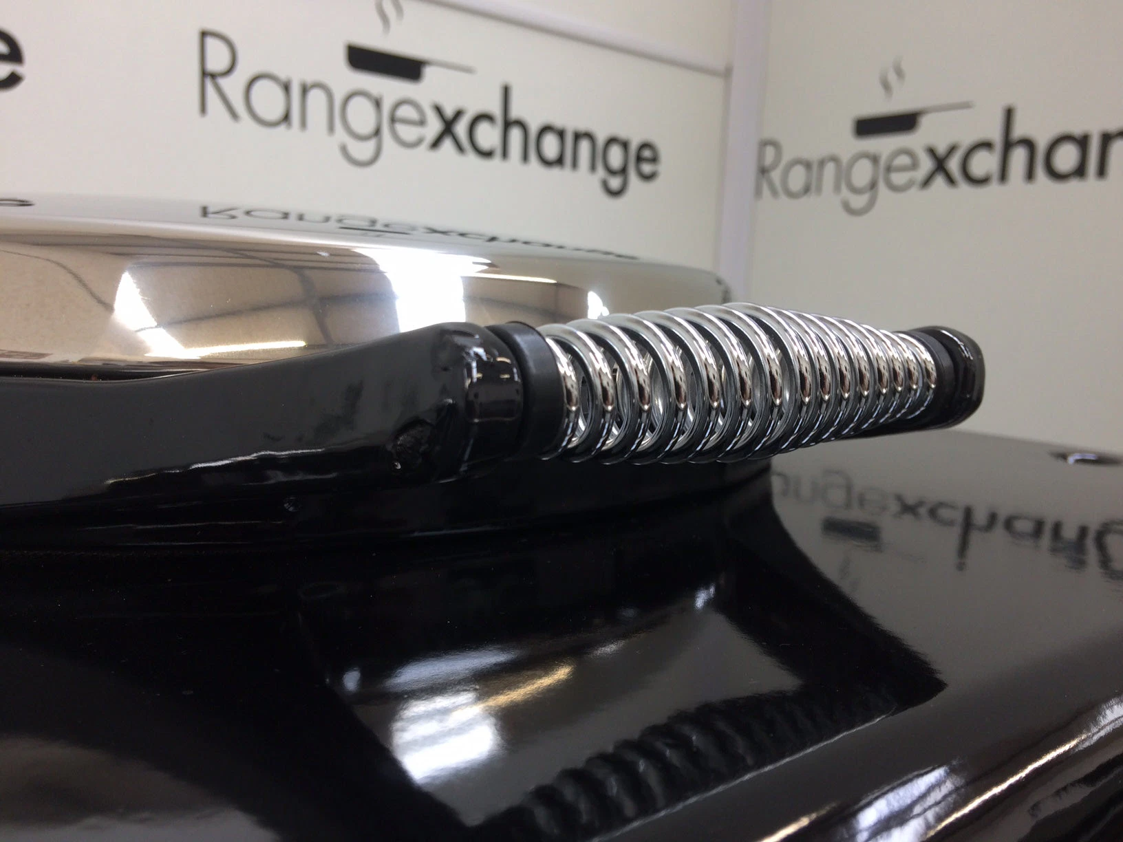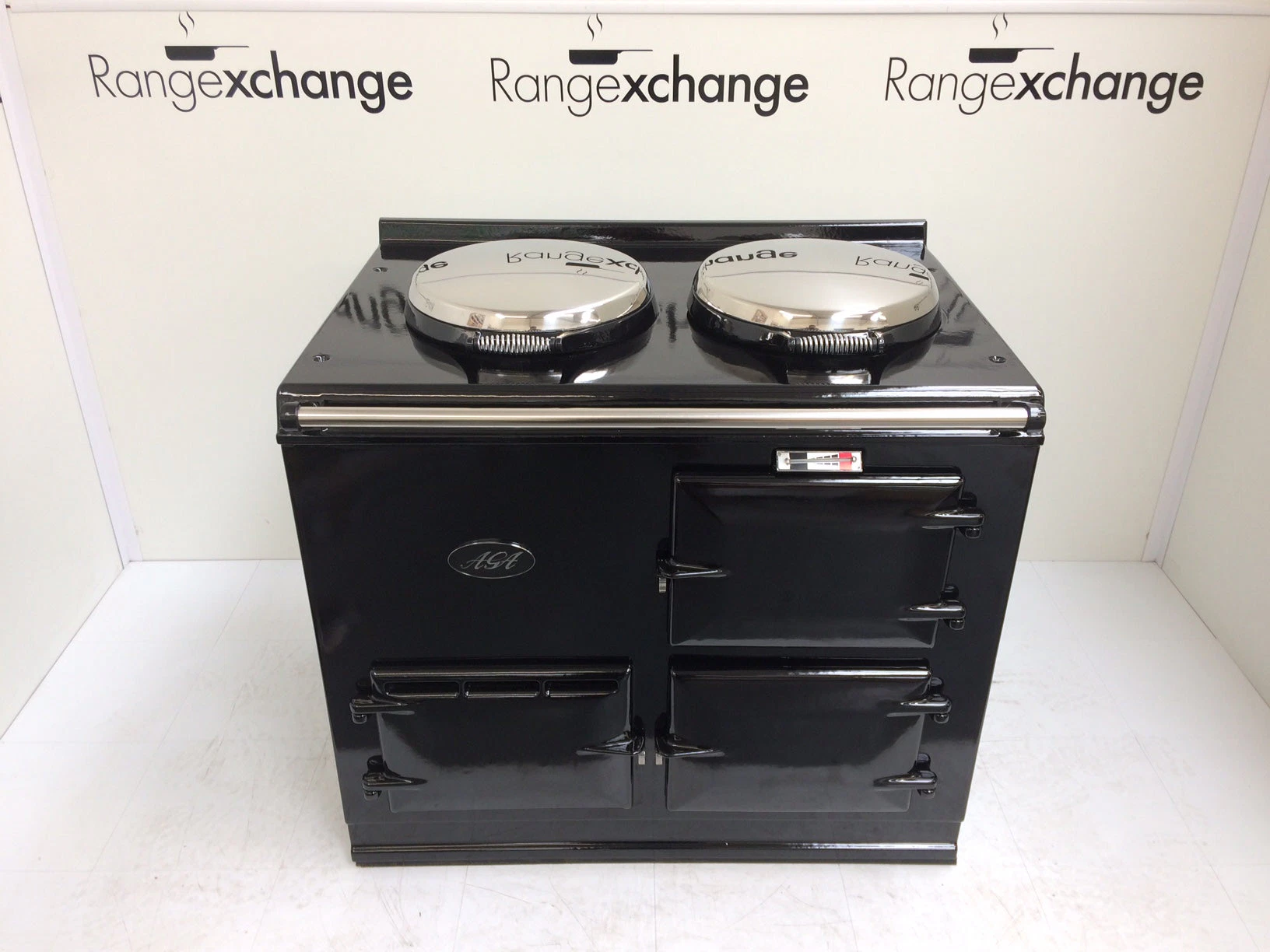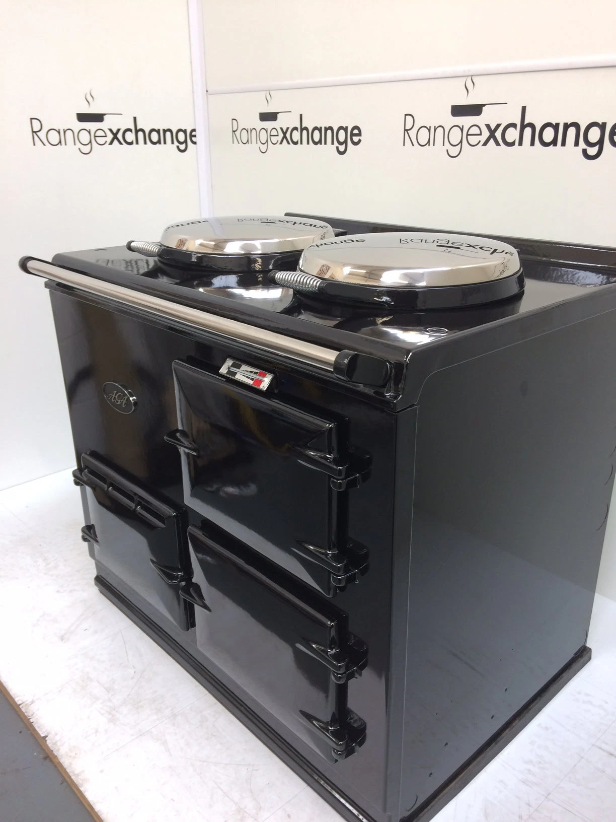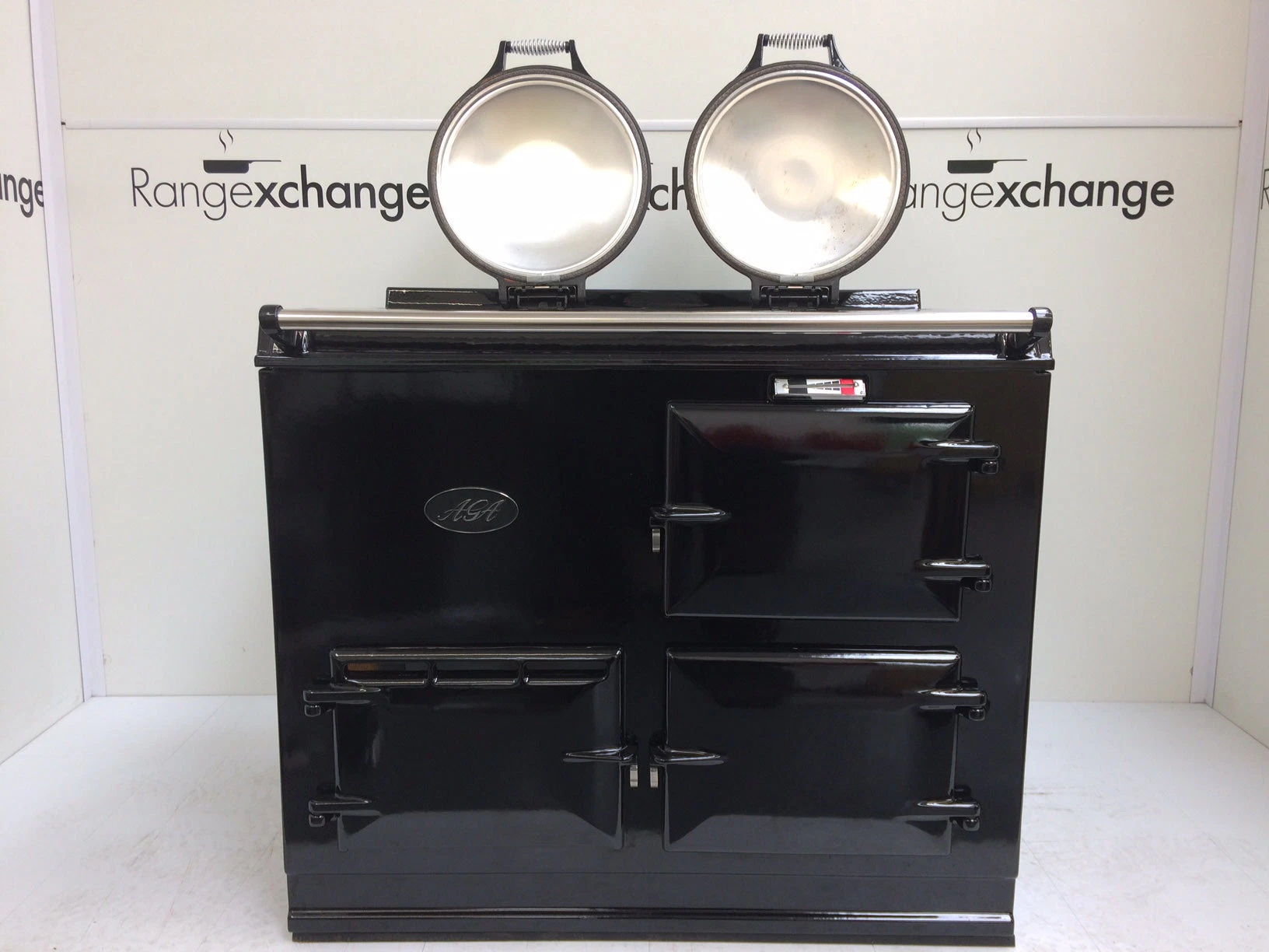 Complete with the new type stainless steel door catches, spring loaded lids, space age insulation and latest burner, all helping to provide efficiency and ease of use. The cooker has smart, black side panels, keeping in line with the latest Aga cooker design.