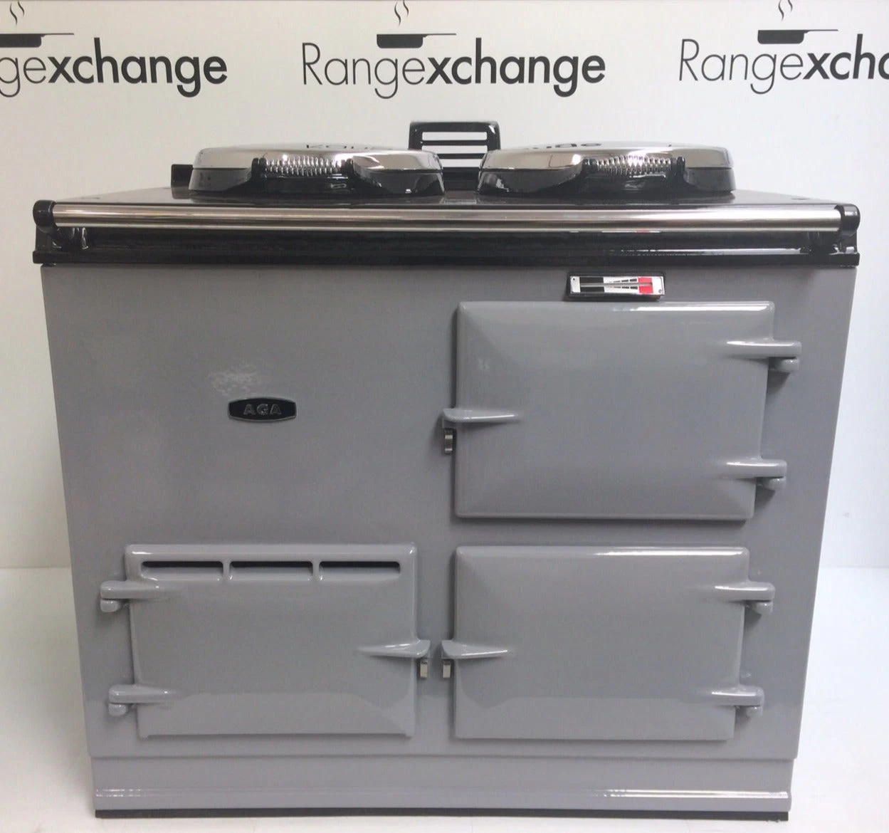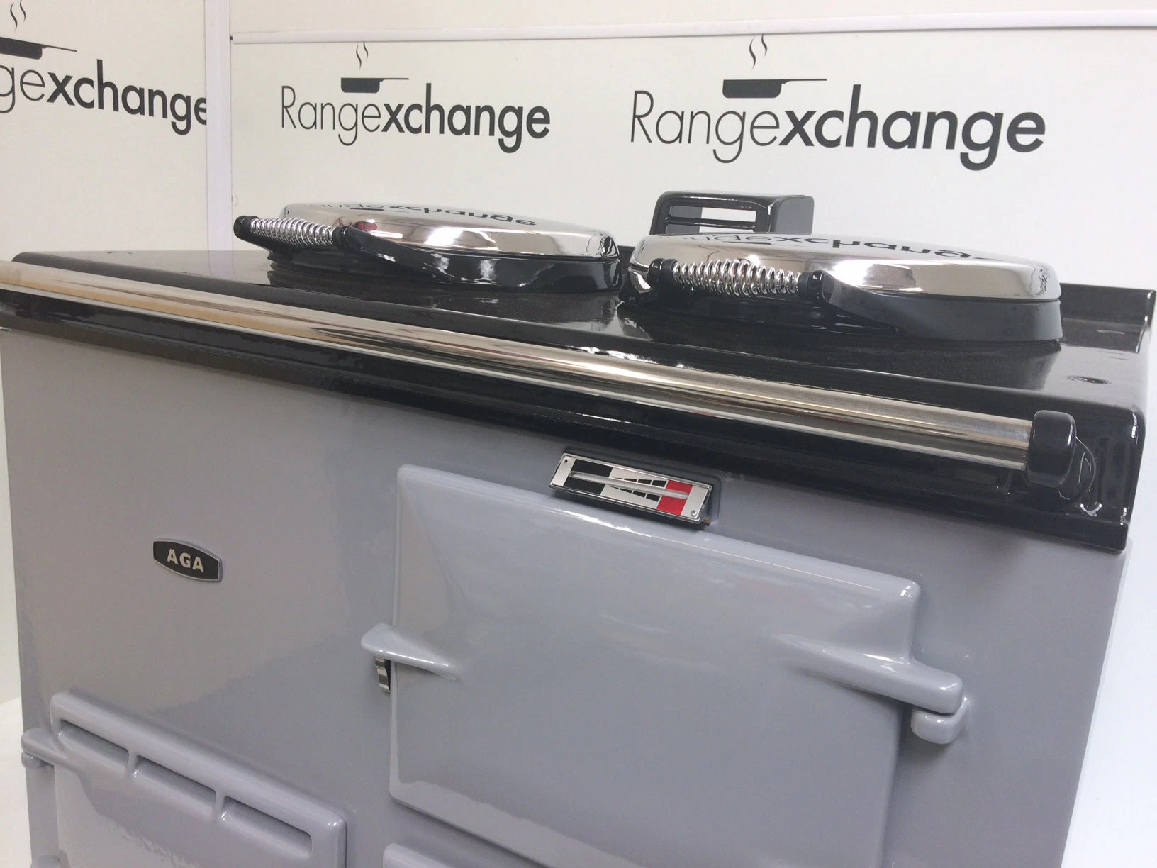 Complete with the new type stainless steel door catches, spring loaded lids, space age insulation and latest burner, all helping to provide efficiency and ease of use. The cooker has smart, black side panels, keeping in line with the latest Aga cooker design.