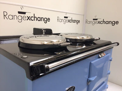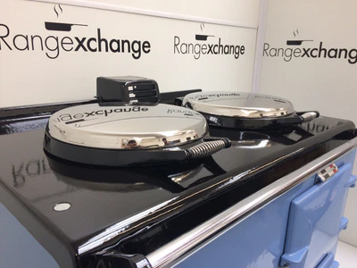 Complete with the new type stainless steel door catches, spring loaded lids, space age insulation and latest burner, all helping to provide efficiency and ease of use. The cooker has smart, black side panels, keeping in line with the latest Aga cooker design.