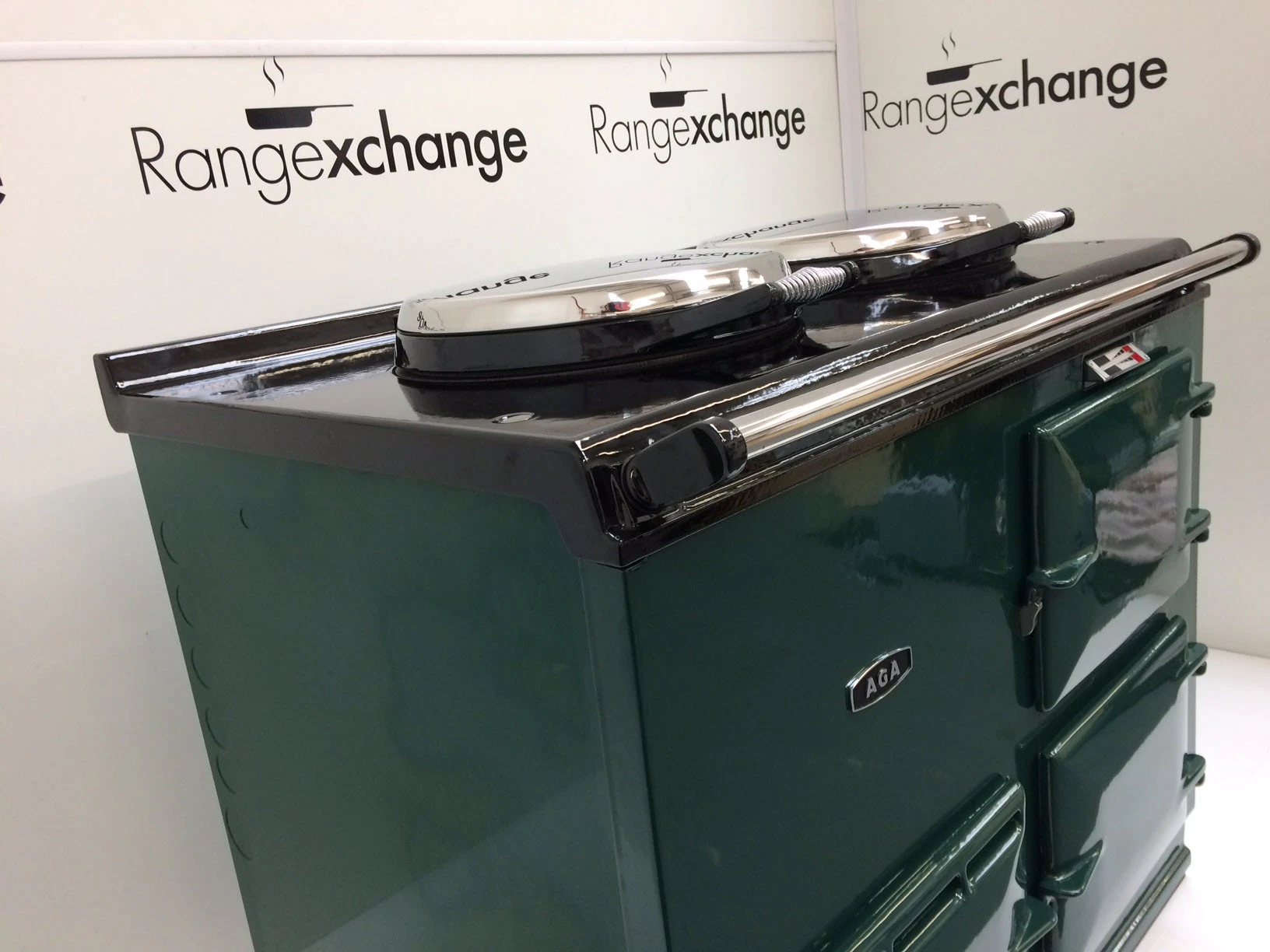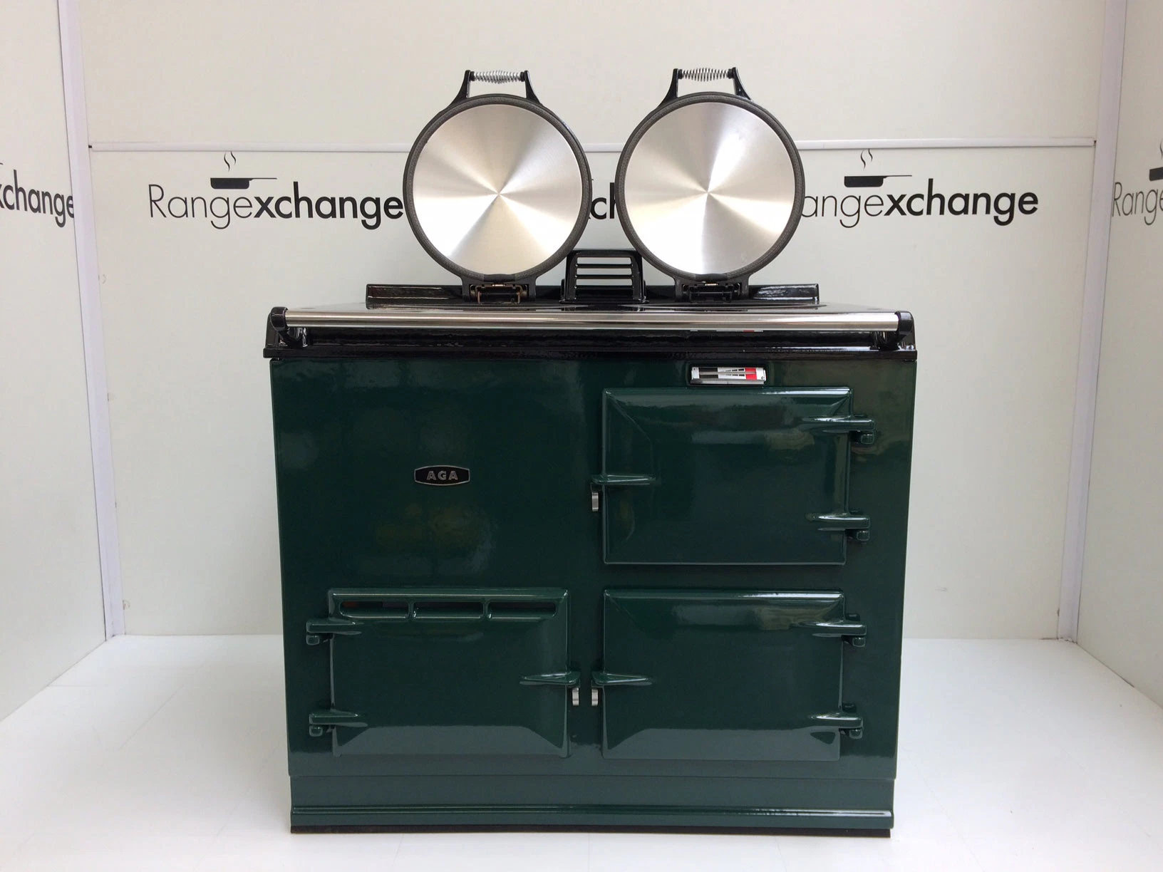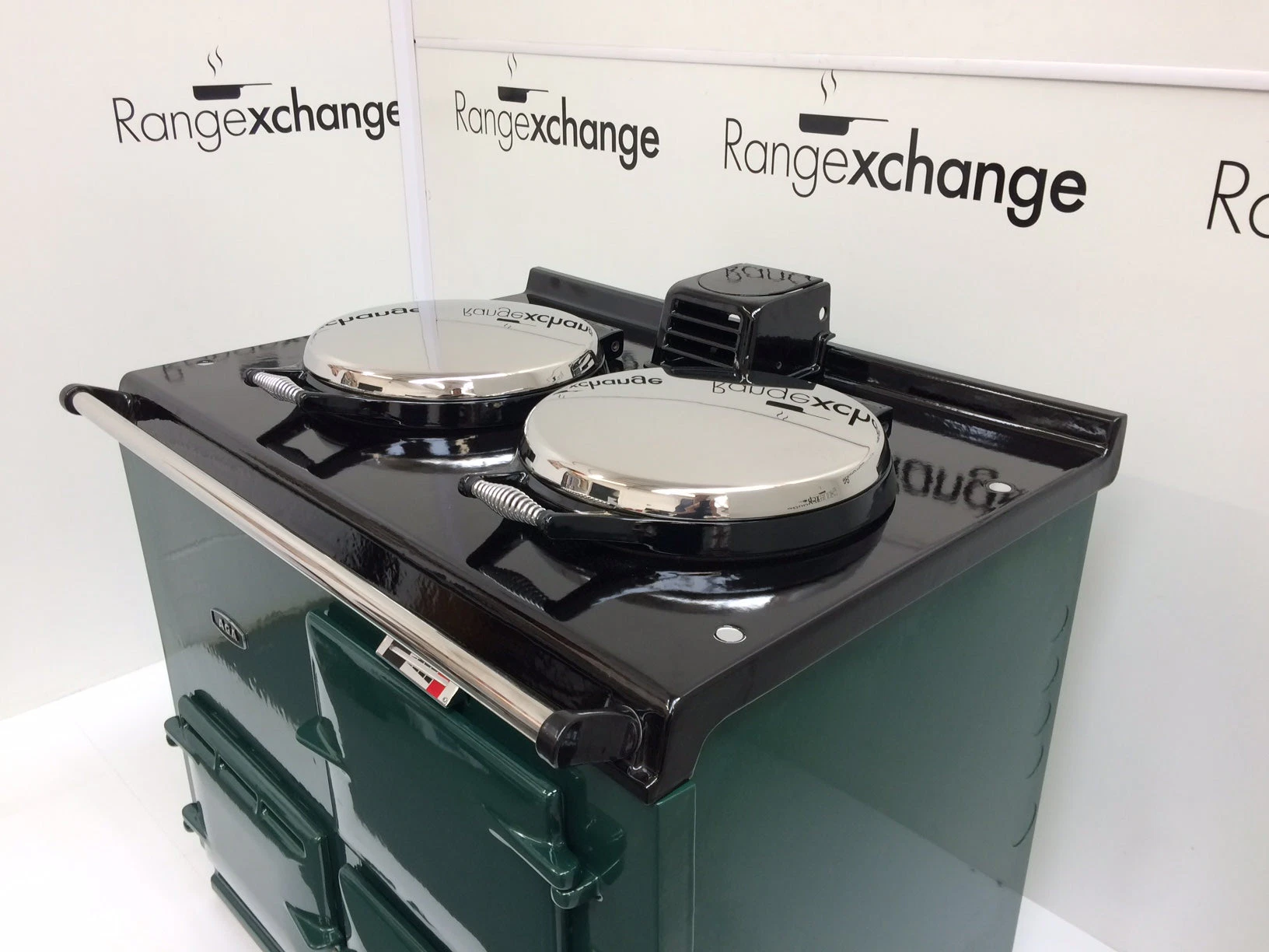 Complete with the new type stainless steel door catches, spring loaded lids, space age insulation and latest burner, all helping to provide efficiency and ease of use. The cooker has smart, black side panels, keeping in line with the latest Aga cooker design.