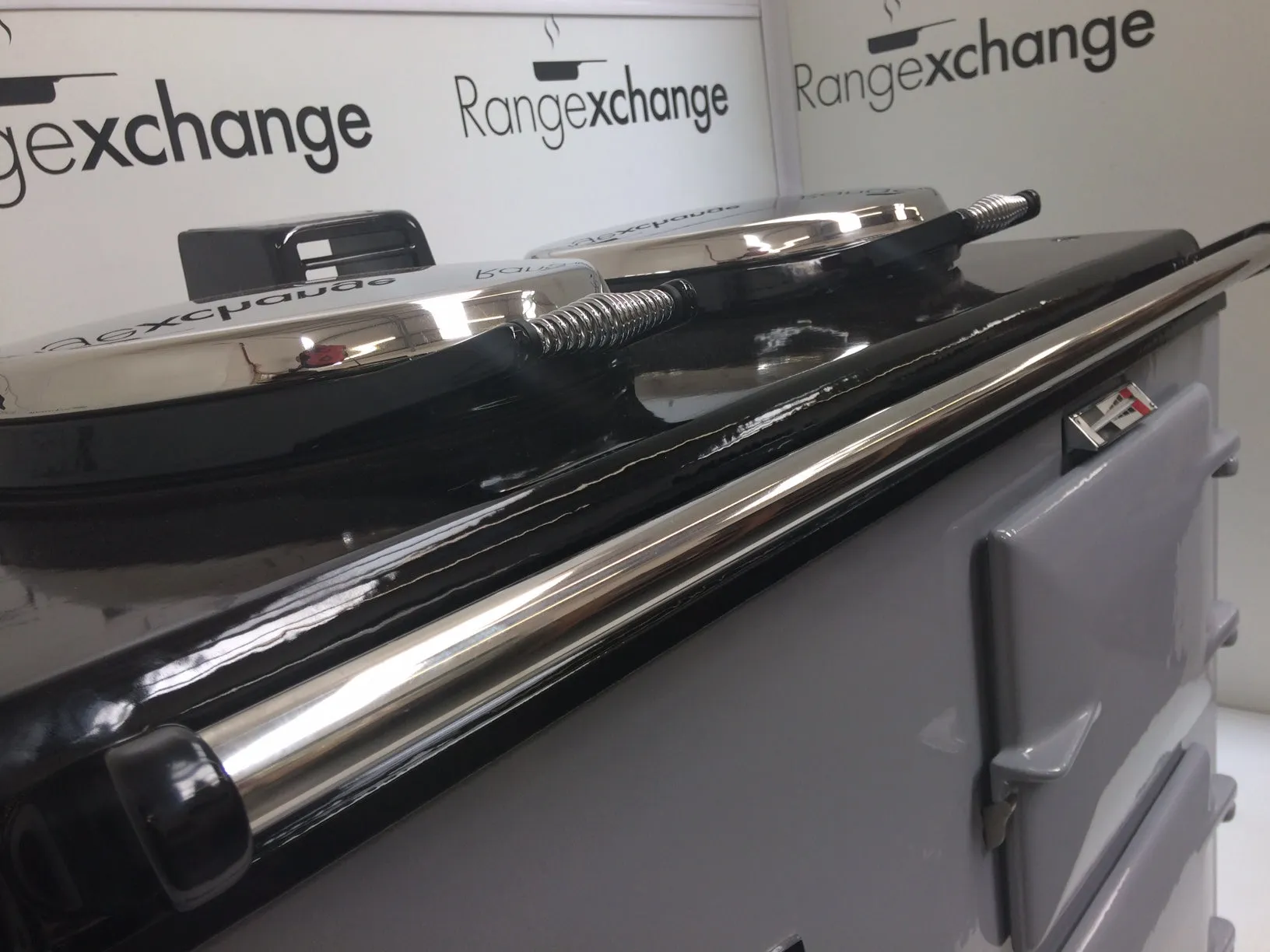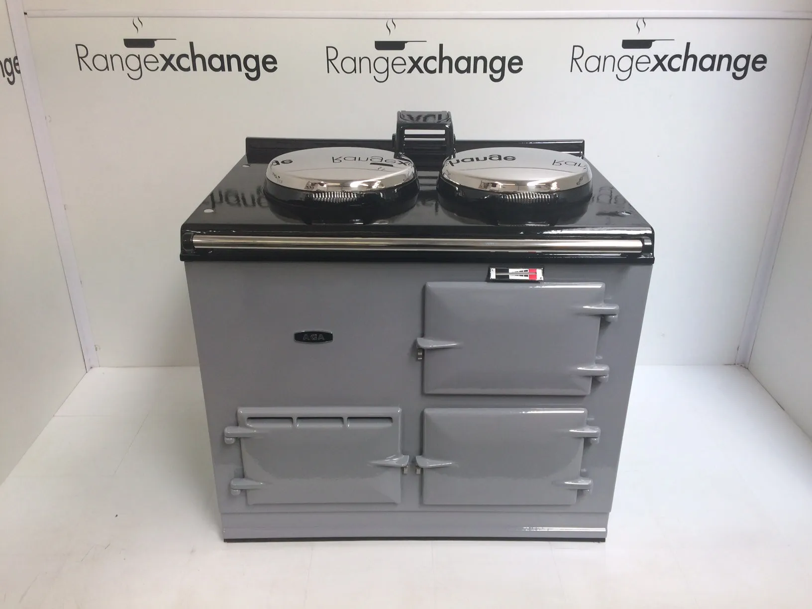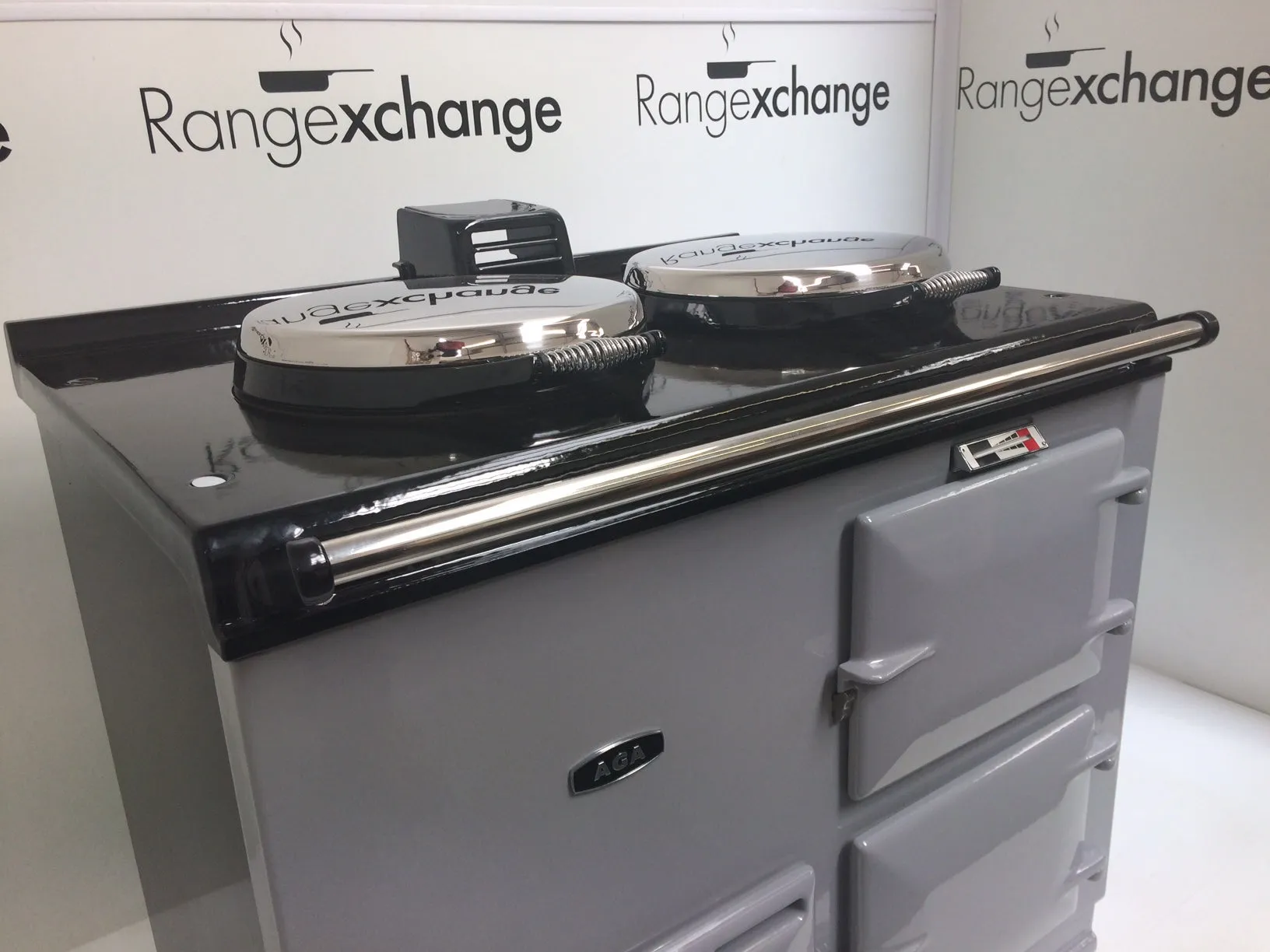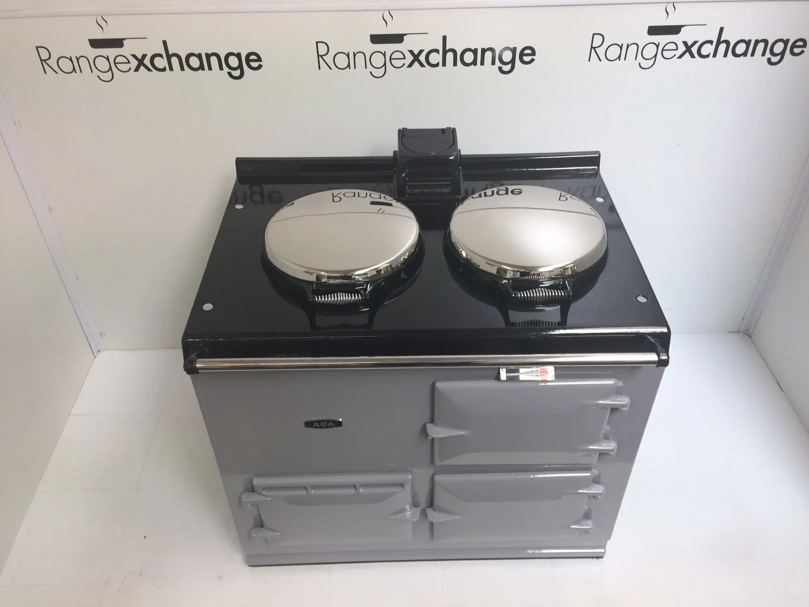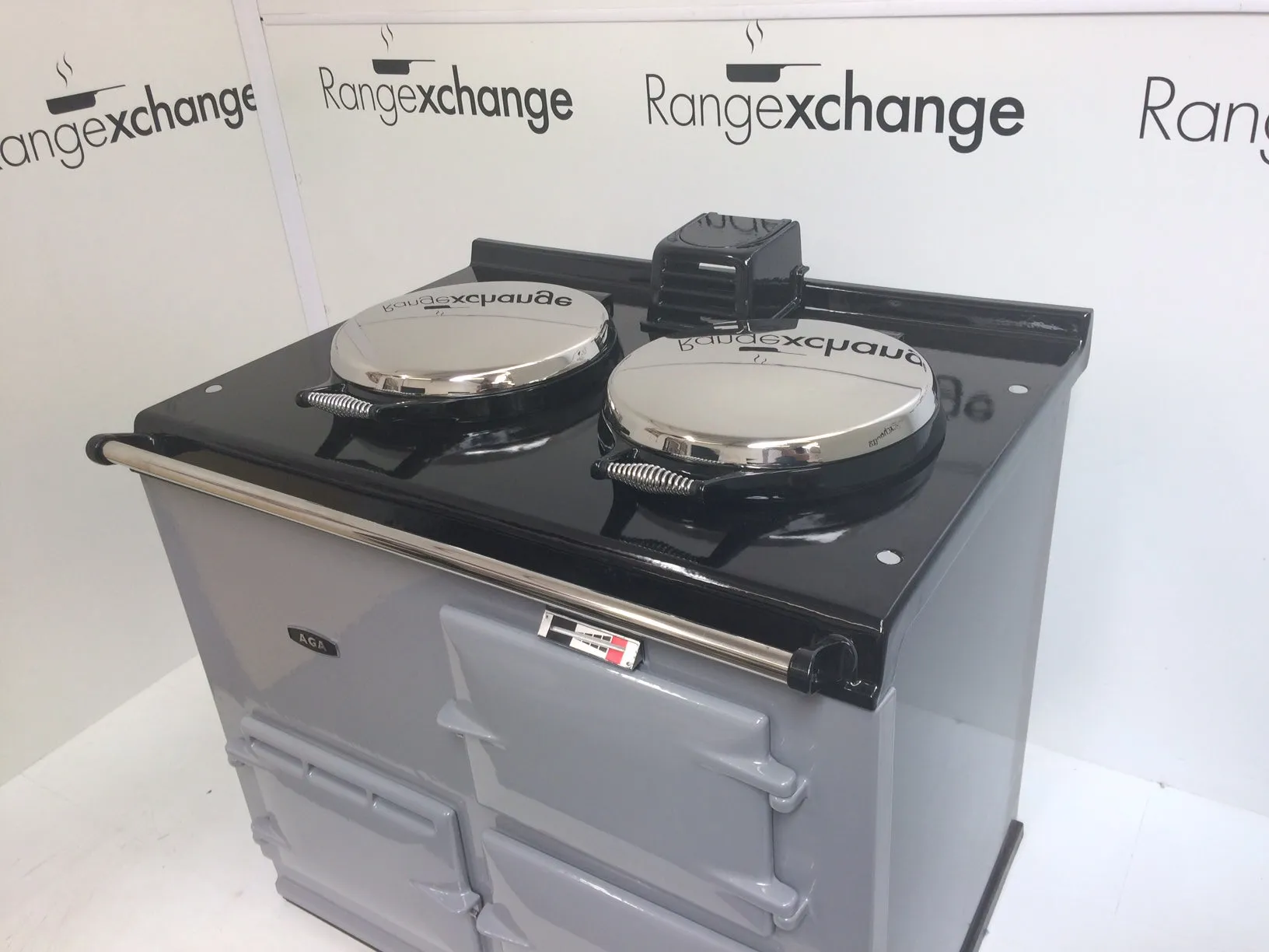 Complete with the new type stainless steel door catches, spring loaded lids, space age insulation and latest burner, all helping to provide efficiency and ease of use. The cooker has smart, black side panels, keeping in line with the latest Aga cooker design.