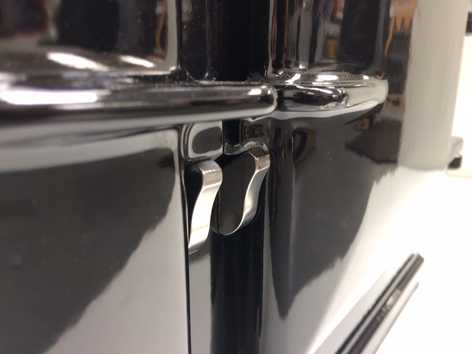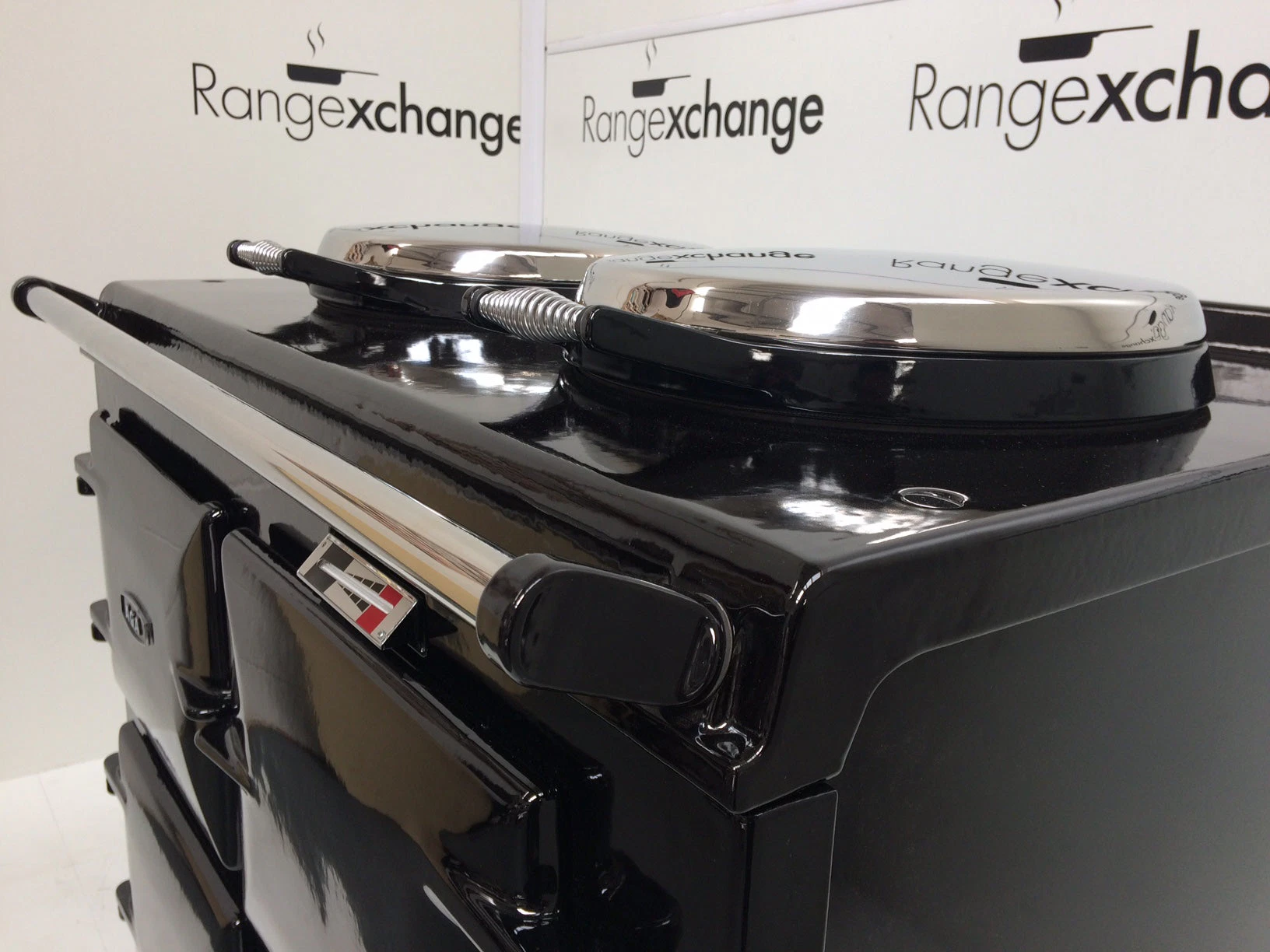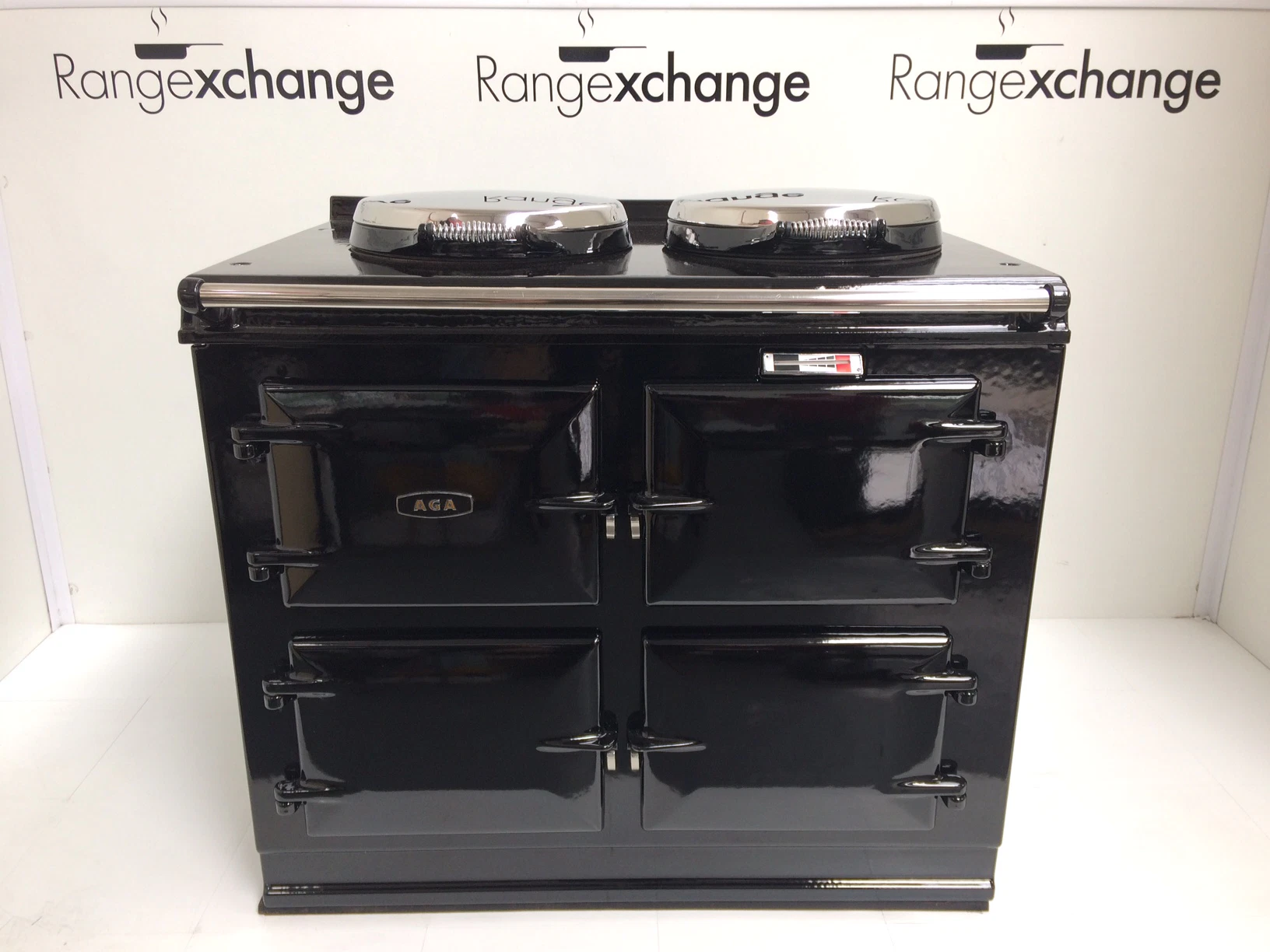Complete with the new type stainless steel door catches, spring loaded lids, space age insulation and latest burner, all helping to provide efficiency and ease of use. The cooker has smart, black side panels, keeping in line with the latest Aga cooker design.