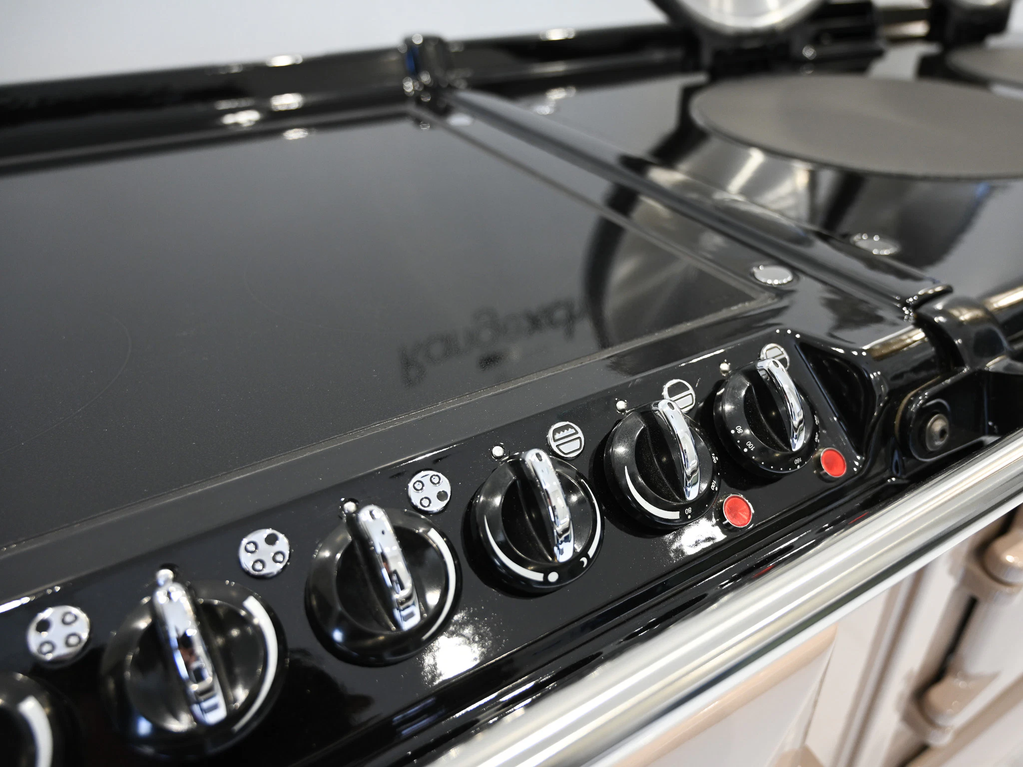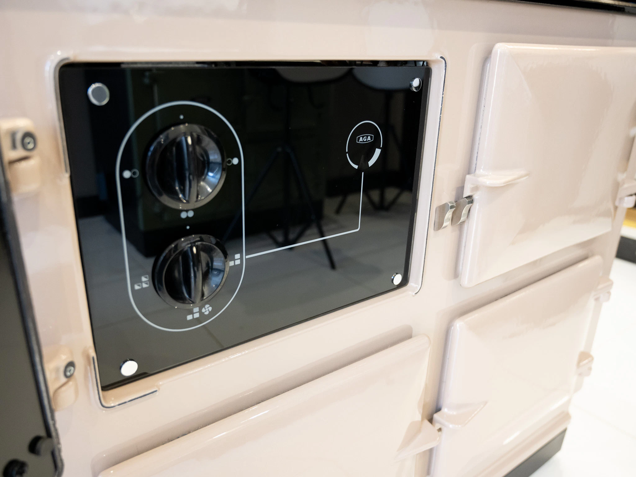 As the name suggests the Dual Control Aga cooker has two controls. One dial for the ovens, which are normally on all the time (as with a traditional Aga cooker). The other dial controls the hotplates which are normally off until being turned on when you need them.