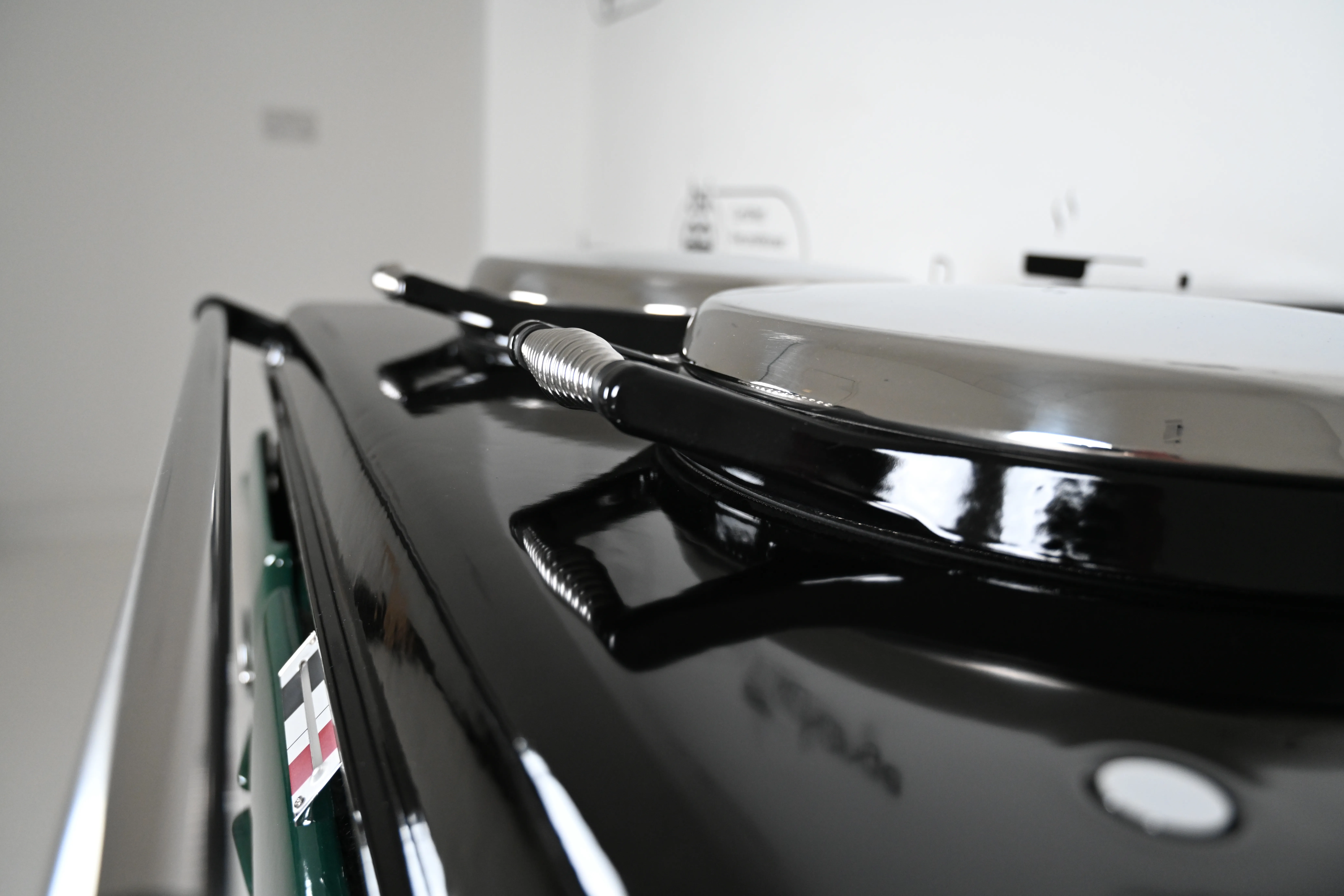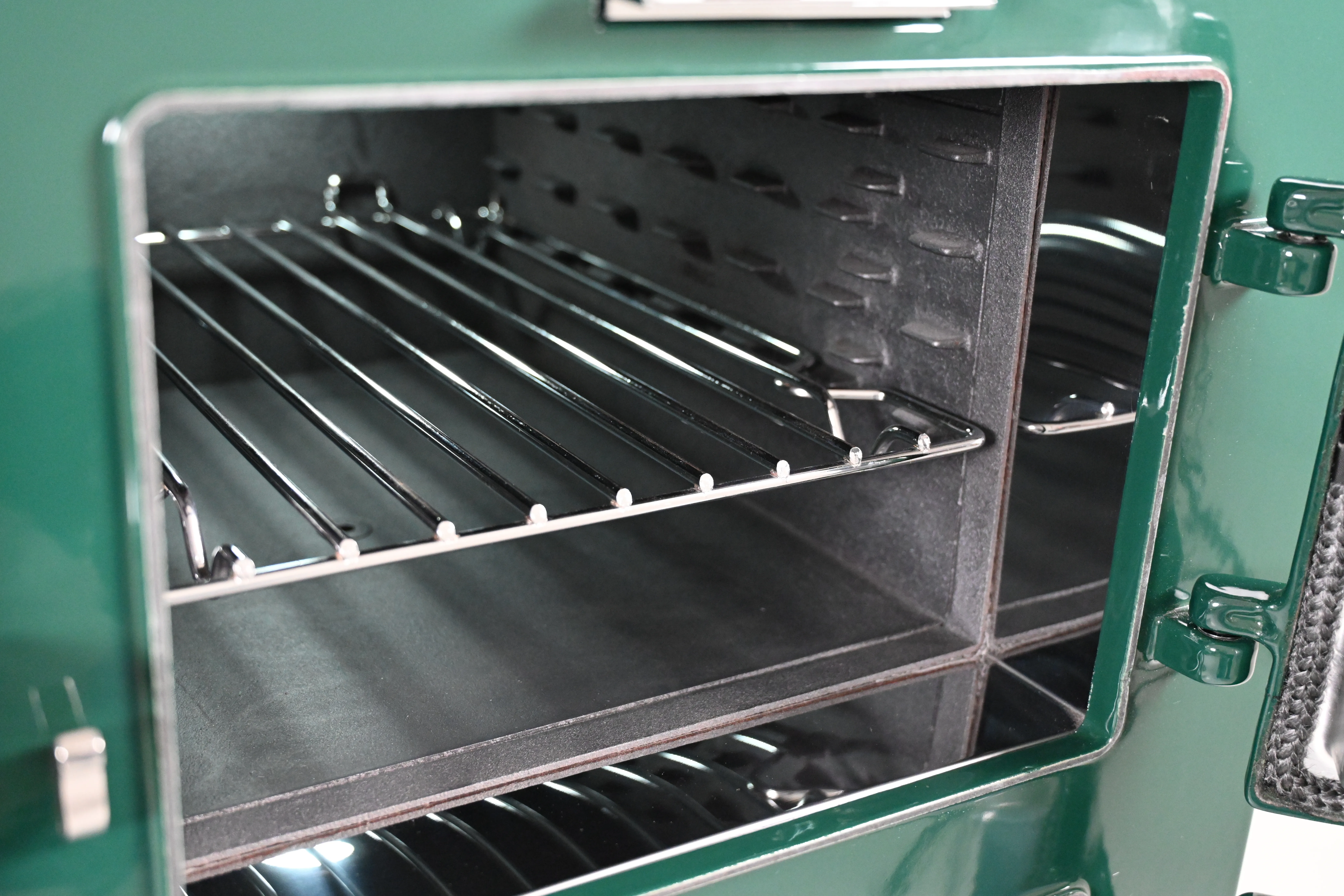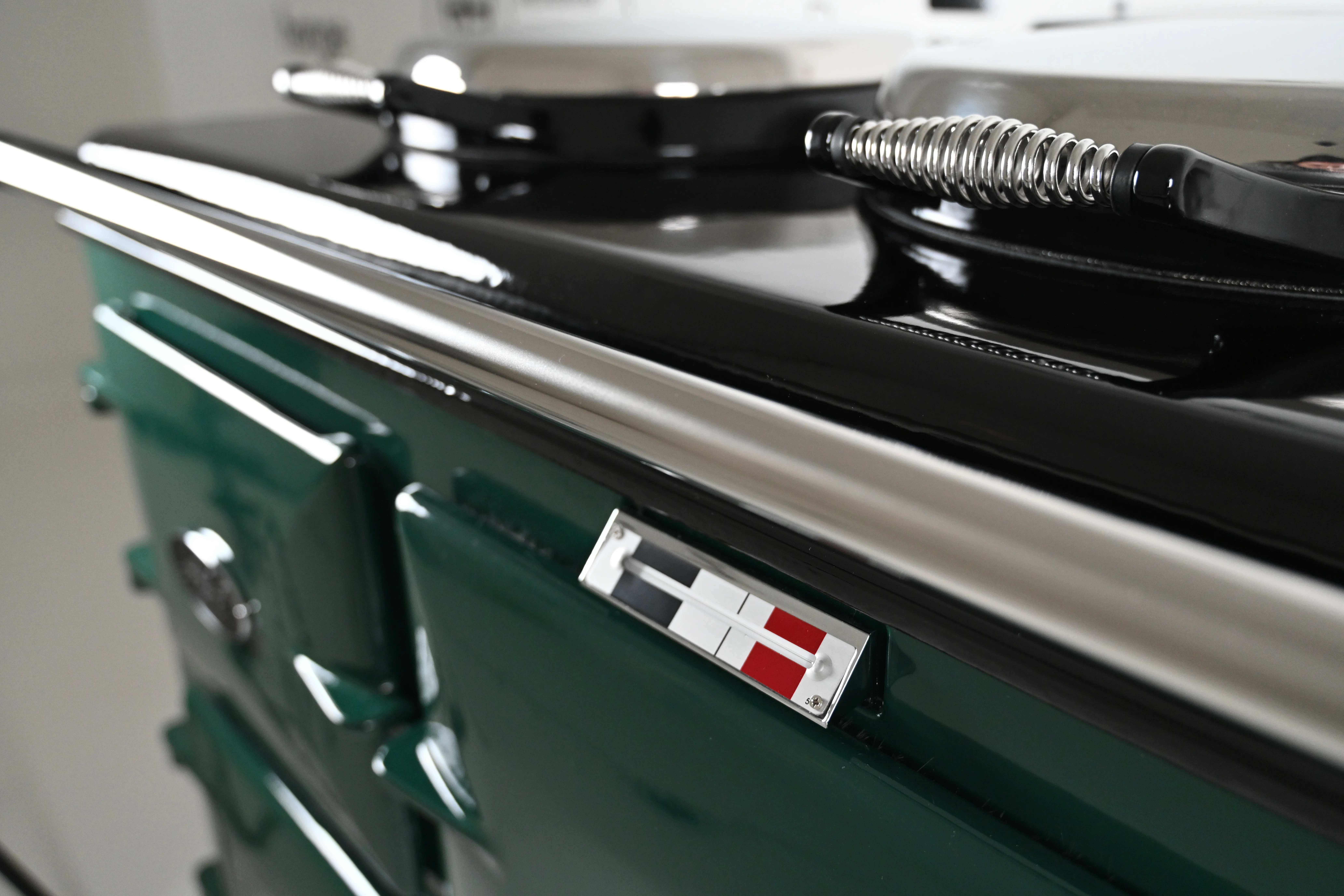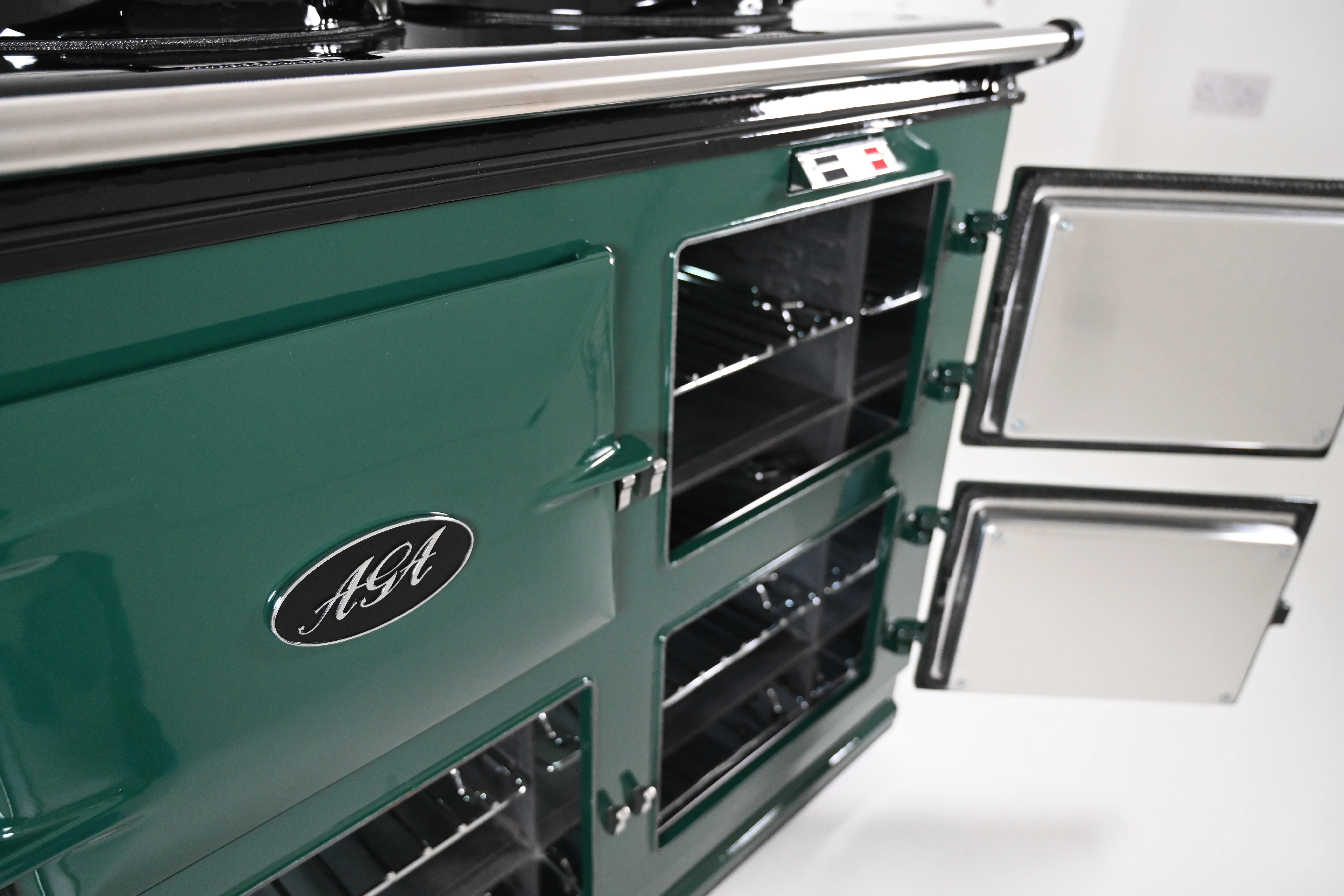 The cooker has smart, black side panels, keeping in line with the latest Aga cooker design.