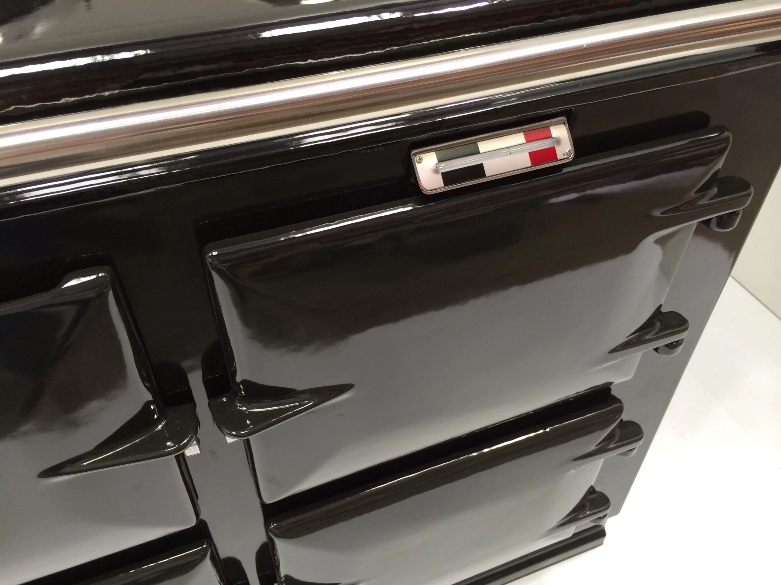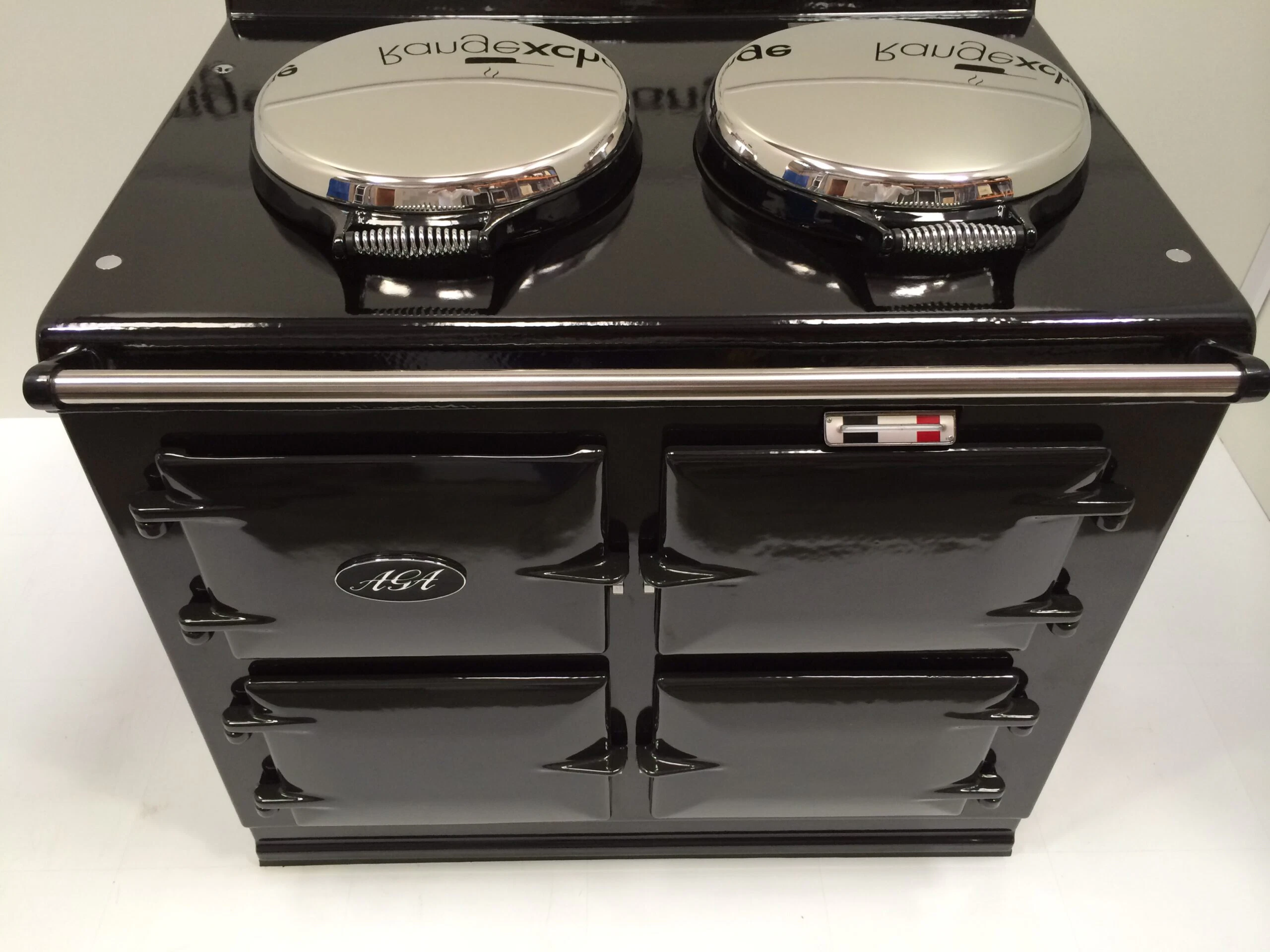 The cooker has smart, black side panels, keeping in line with the latest Aga cooker design.