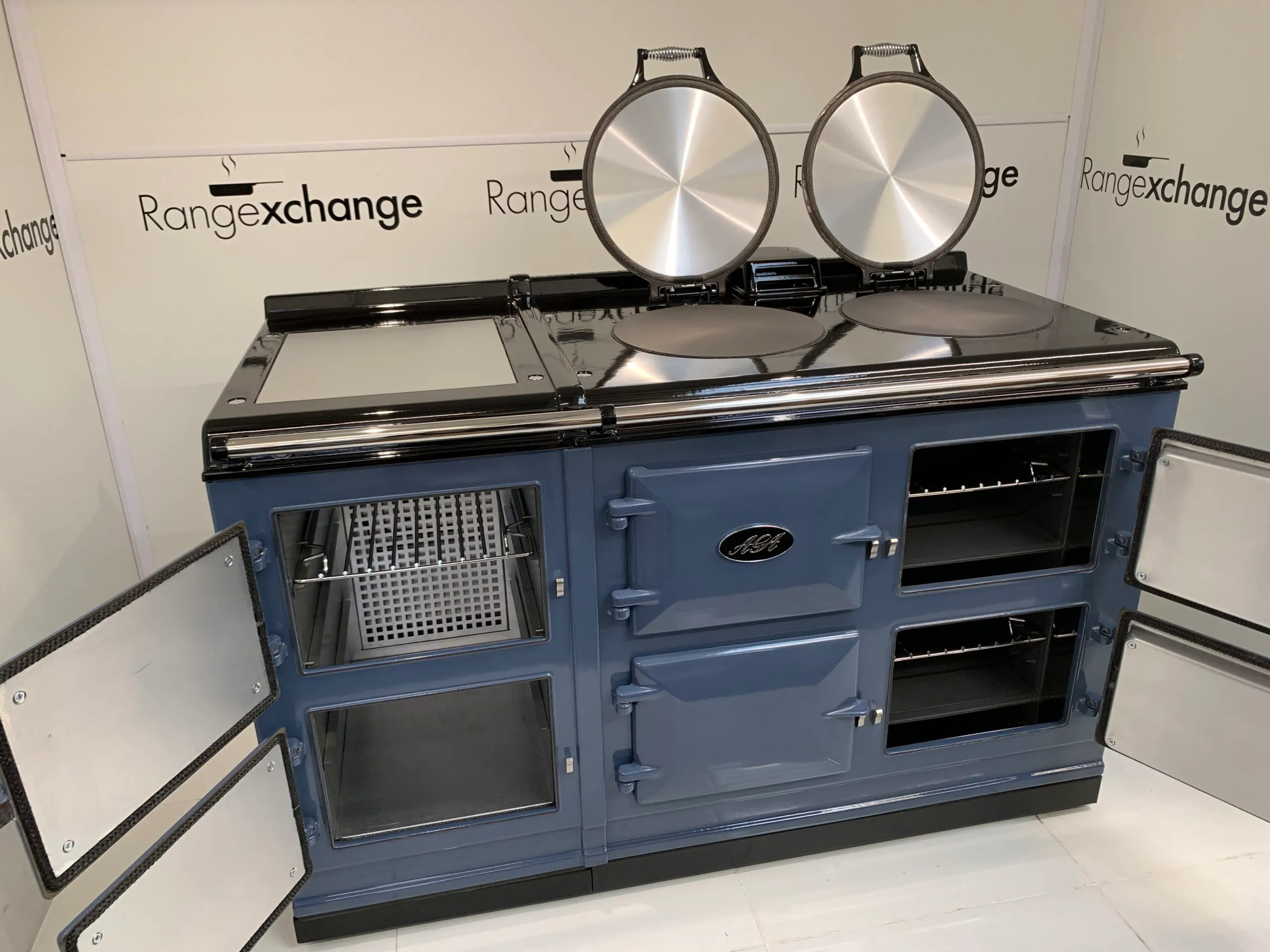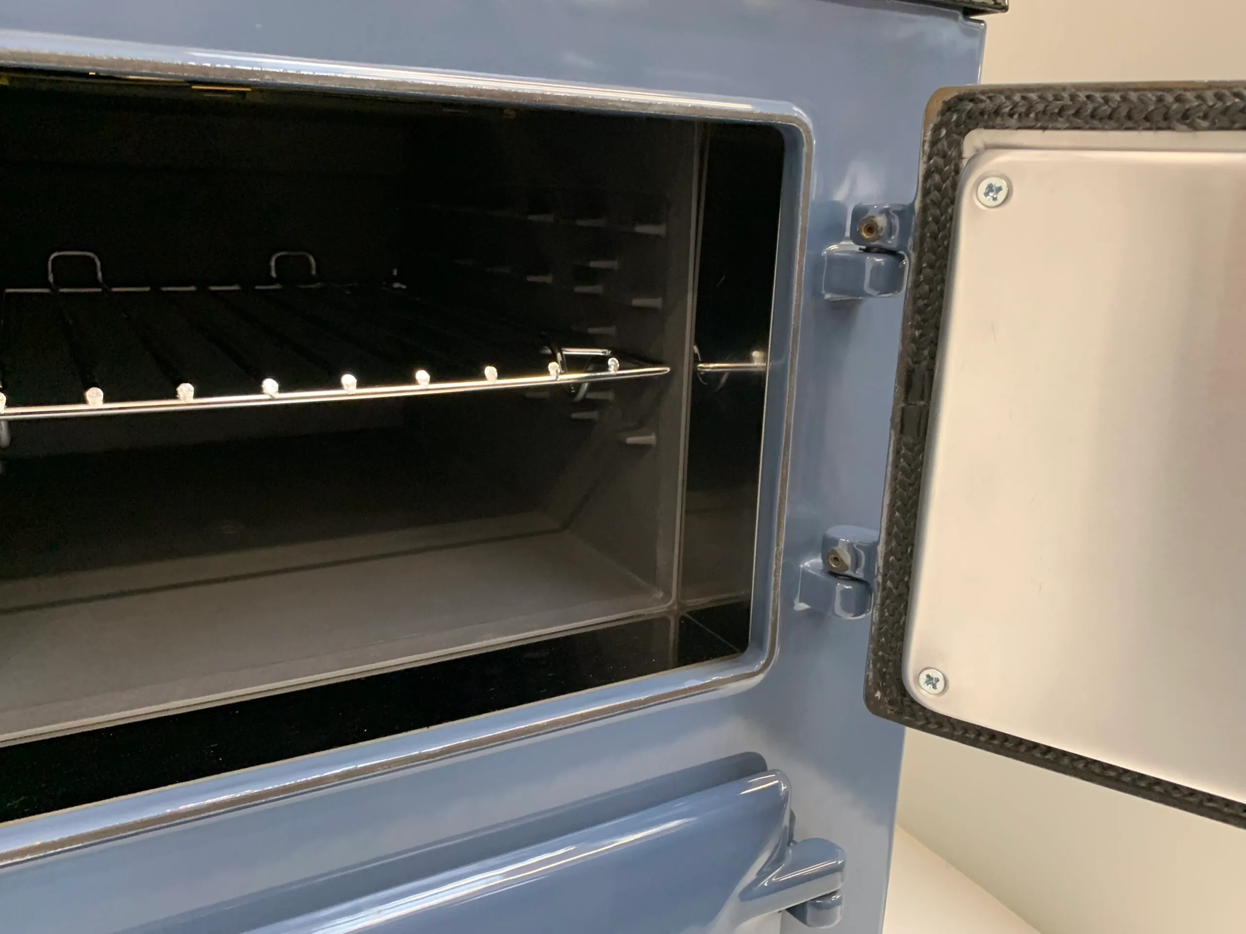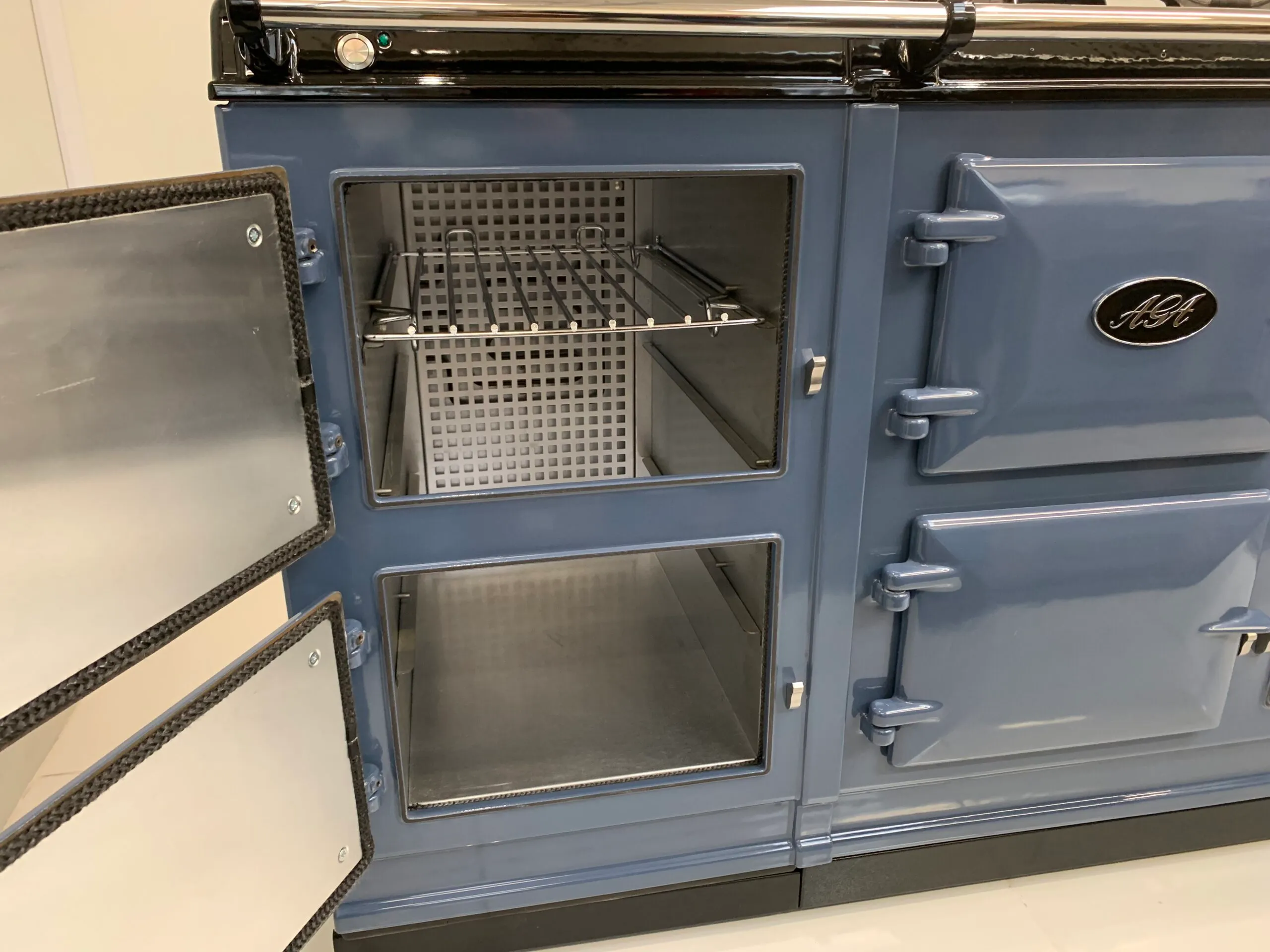 On top, this cooker keeps with the traditional Aga cooker design, featuring two independently controlled hotplates, which heat up in only 10 minutes and can be turned on as and when required.