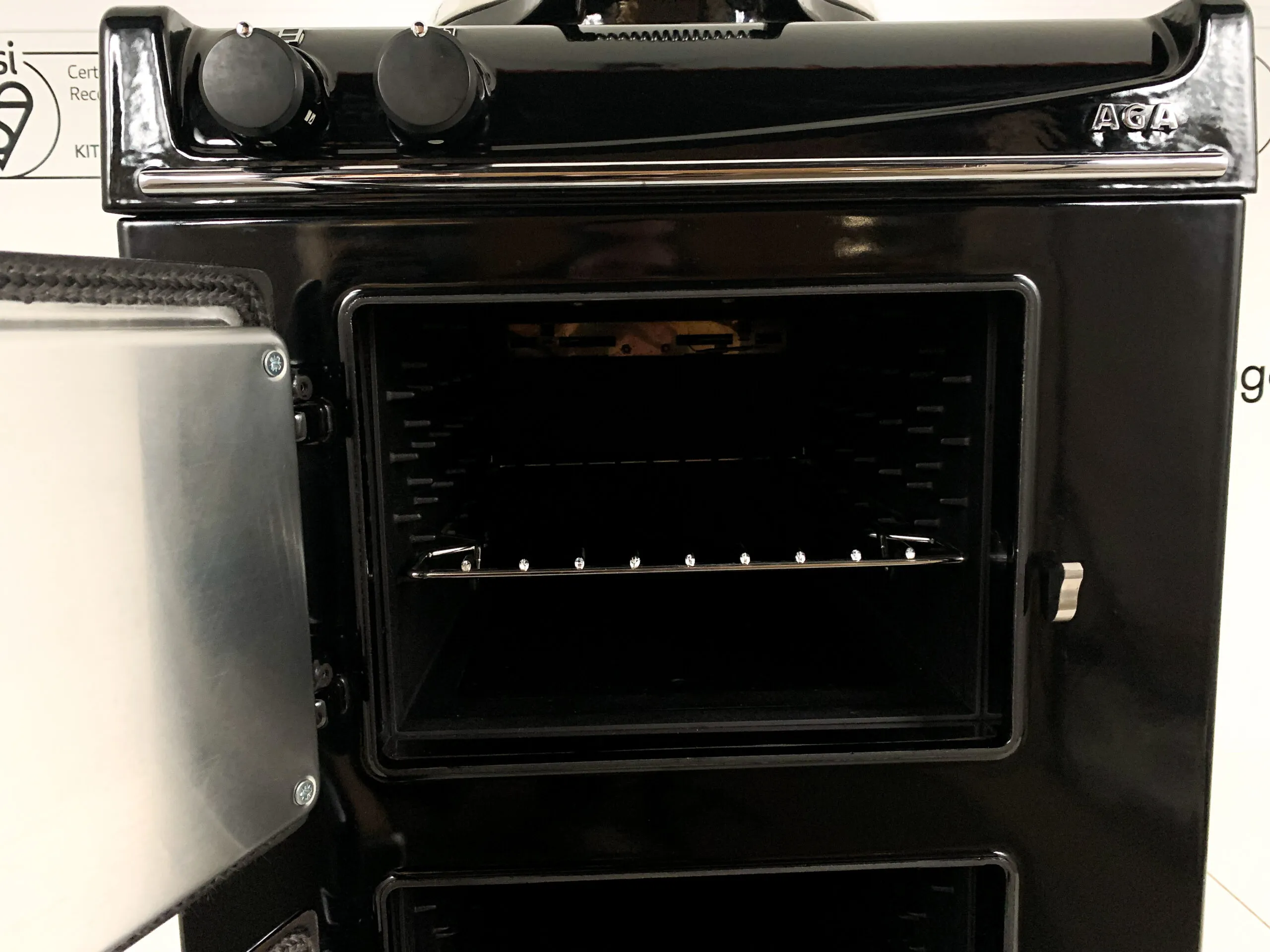 The top oven can be set to roasting or baking whilst the lower oven is for simmering.