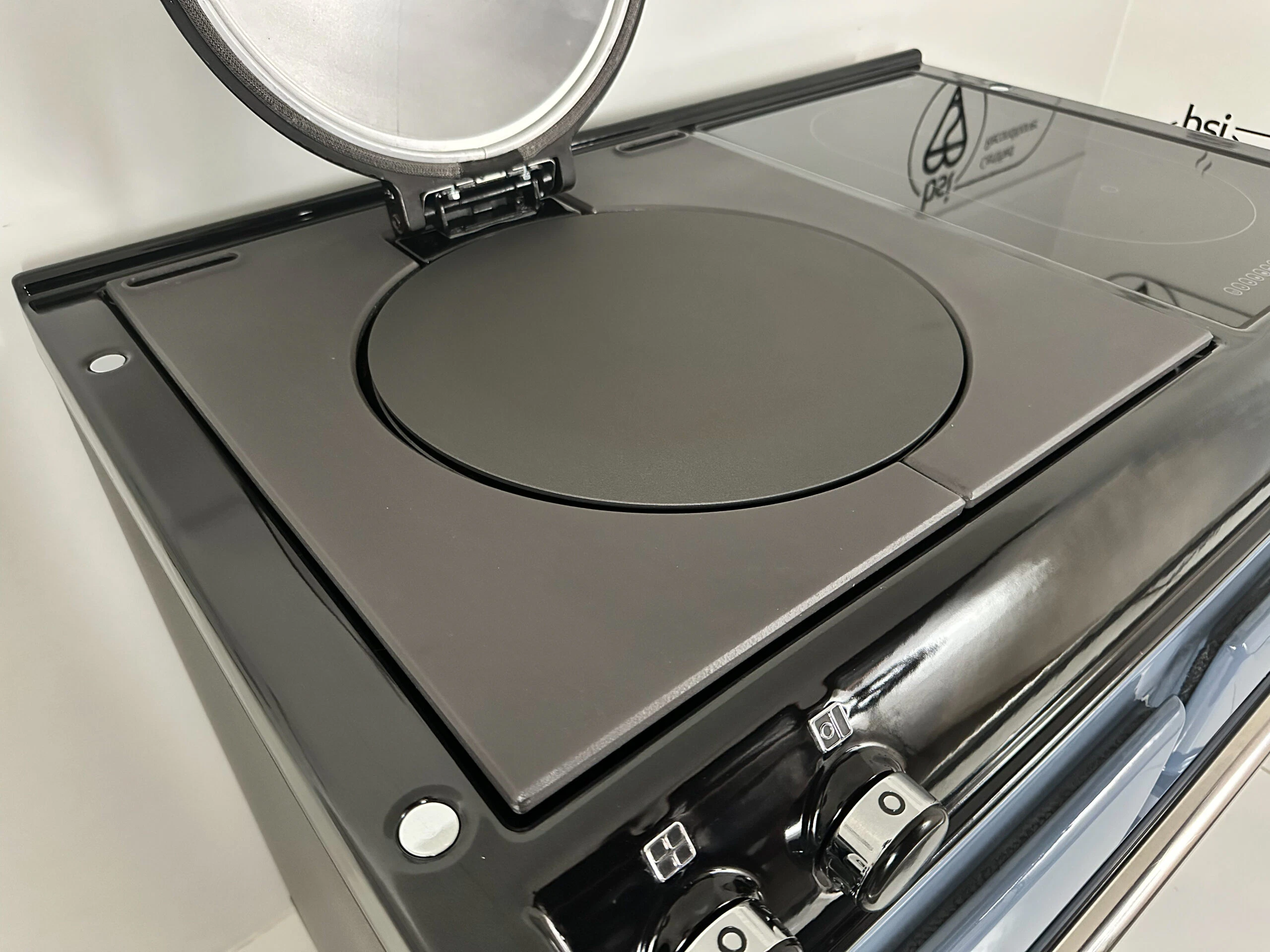 This reconditioned eR3 100i electric Aga cooker offers fast heat-up times and flexibility whilst combining both cast-iron radiant heat cooking and conventional cooking.